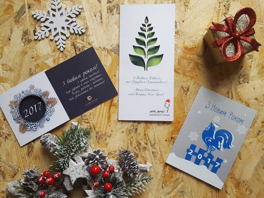 Новорічна листівка зазвичай містить зимові елементи, наприклад ялинки або сніжинки, тому вона створює святковий настрій.